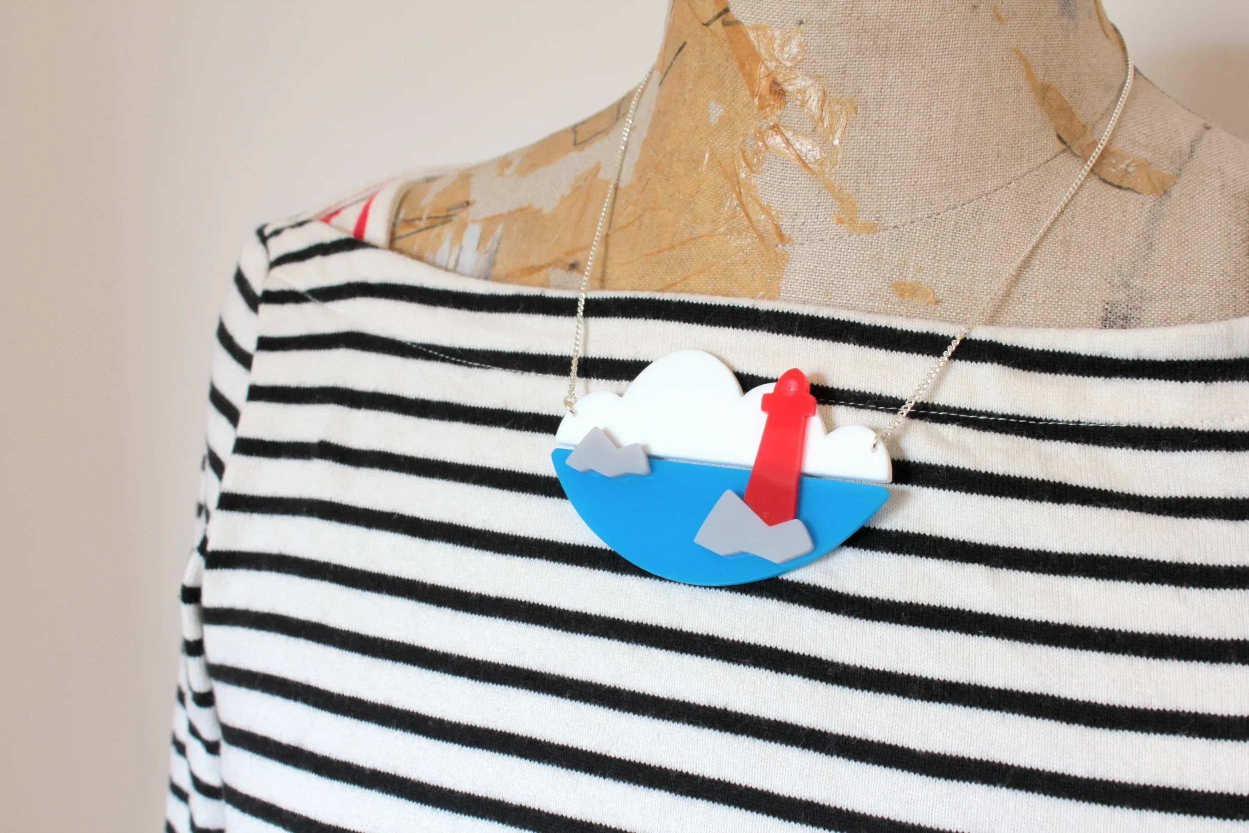 I really enjoyed collaborating with Brendan and Ruth on an exclusive coastal print design that was printed by Peckham Print Studio. Its simplicity made it very pleasing to look at, and it acted as the inspiration for an exclusive - and totally awesome - brooch and necklace set.