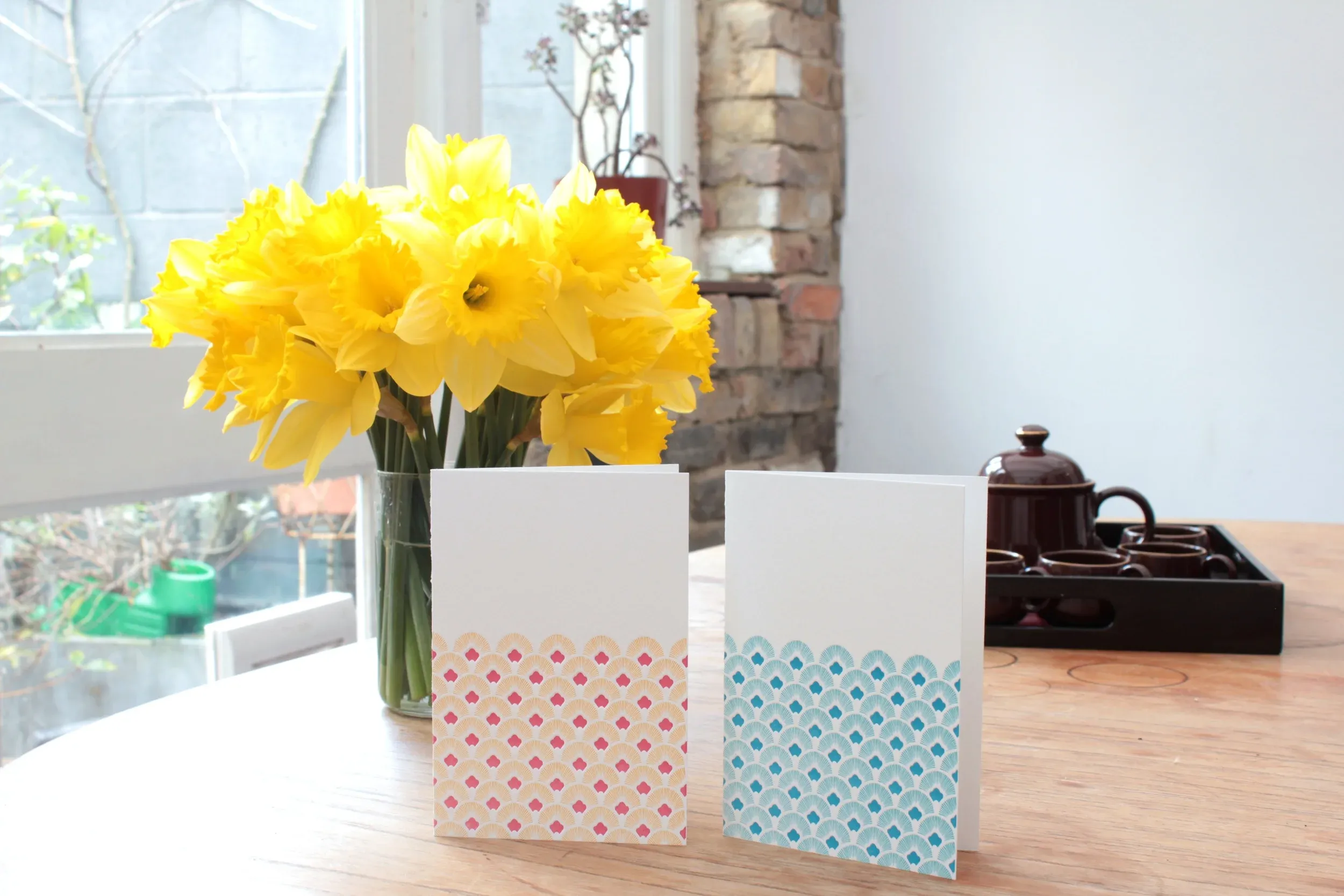 Since 2010, Rachel has used Gee Gee - the letterpress - to print a wide range of designs, from typography to calligraphy to illustration. So it was really exciting to work with Rachel to create a series of exclusive luxury greeting cards based entirely on an Art Deco inspired pattern. Using the letterpress for such a repetitive and intricate design is great - you can feel the indents in the paper where the colour sits so the cards are textural as well as visual products.