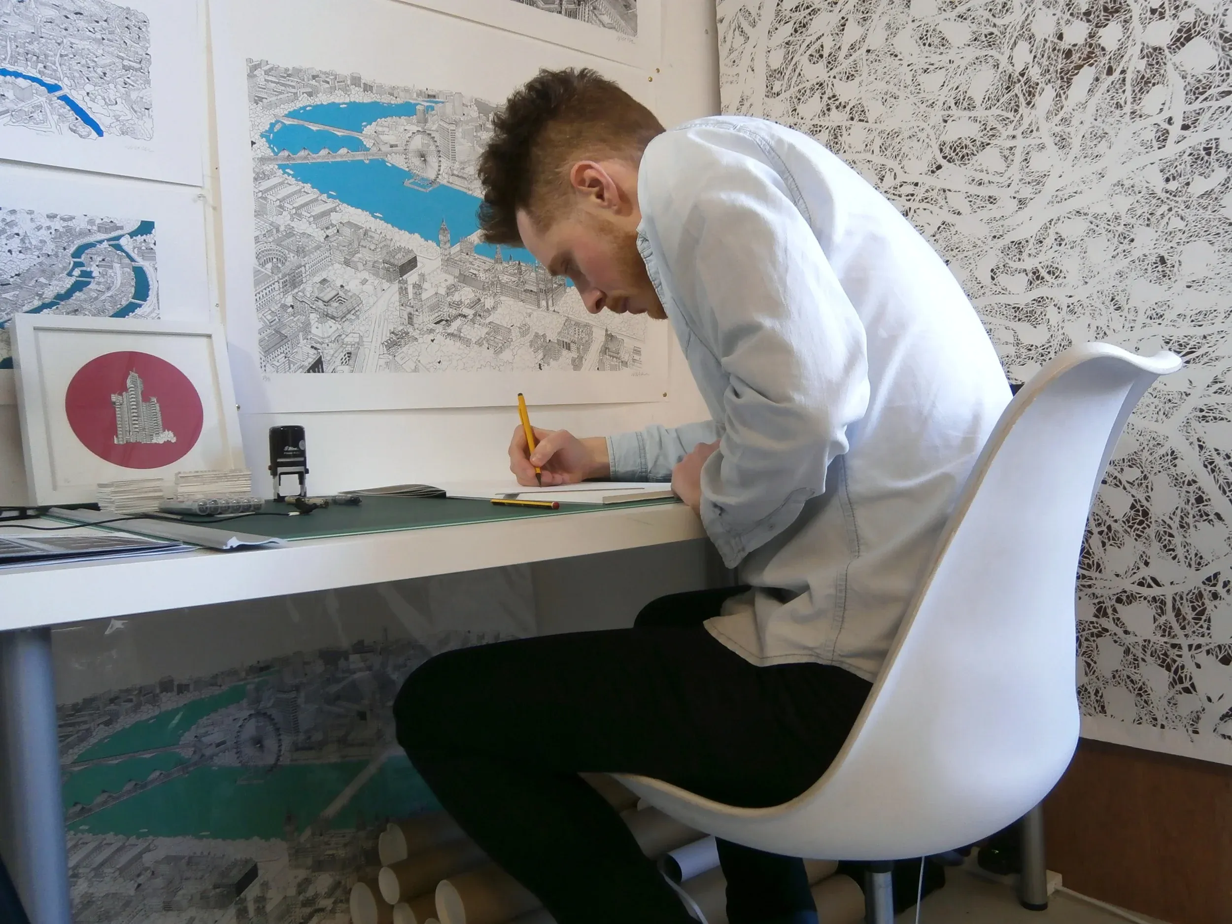 I’d say Will is probably one of the most patient people I know after watching him translate buildings and cities into drawings in his Brixton studio. Painstaking doesn’t really do it justice.